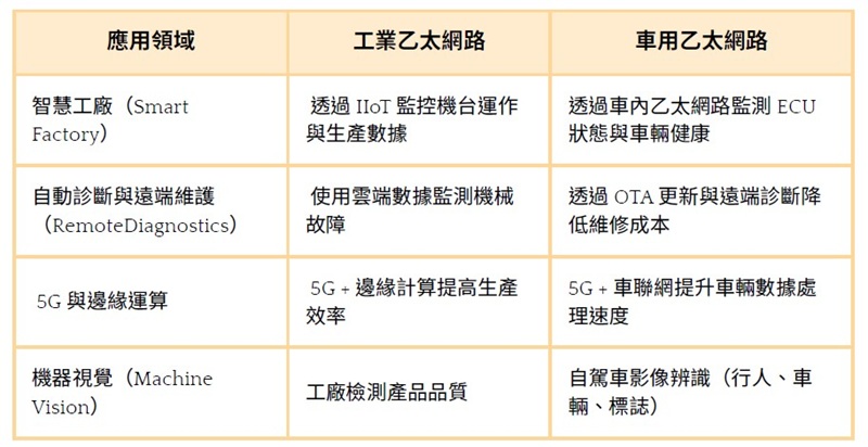 | 圖一 : 工業(yè)乙太網(wǎng)路與車用乙太網(wǎng)路的技術(shù)相似性 |