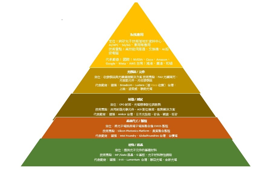 矽光子產業正快速成長,並推動全球供應鏈的重組。在這波技術演進中,臺灣憑藉半導體代工、先進封裝與光學元件的完整布局,正逐步成為不可或缺的戰略樞紐。無論是晶圓製造、光電元件,還是系統整合,臺灣都具備承接國際大單、並與科技巨頭深度合作的優勢。