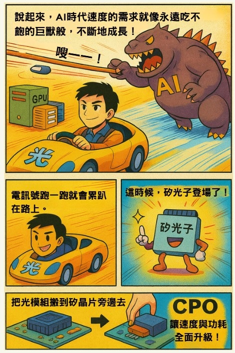 如果要替AI時(shí)代的基礎(chǔ)設(shè)施寫一句註腳,大概會(huì)是:「算力不怕多,怕的是塞車。」當(dāng)GPU叢集橫向擴(kuò)張、節(jié)點(diǎn)數(shù)翻倍,資料中心的瓶頸不再只在 TOPS,而是節(jié)點(diǎn)之間能不能「不流汗地對(duì)話」。銅線在短距離內(nèi)堪用,但一旦速率衝上800G、1.6T甚至更高,電連結(jié)的損耗、熱與功耗就像三座小山,攔在系統(tǒng)擴(kuò)張的國(guó)道交流道口。