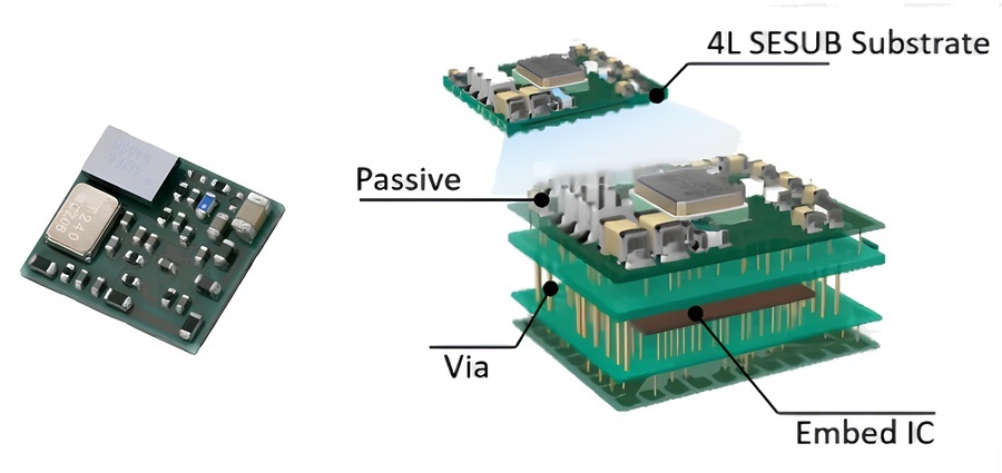 圖三 : SiP透過並排、堆疊等方式,將不同的裸晶和被動元件整合在一起。(source:ASE)