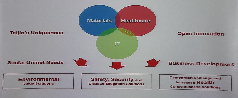 圖1 : 日本帝人(TEIJIN)集團(tuán)業(yè)務(wù)組合轉(zhuǎn)型包括材質(zhì)、健康和IT三個(gè)面向。(source:TEIJIN; 2018/10)