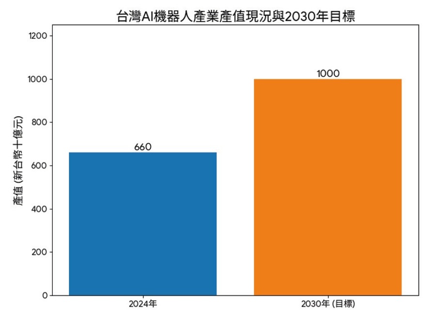 | 圖二 : 臺灣AI機器人產業產值現況與2030年目標 |