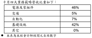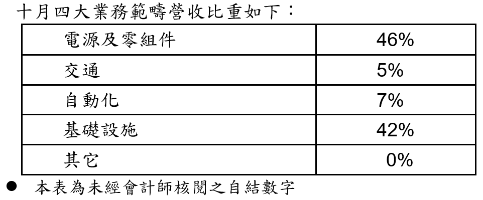臺達電子工業股份有限公司(10)日公佈114年10月份合併營業額為新臺幣573.84億元,較113年同期合併營業額新臺幣388.17億元成長47.8%,較上月份合併營業額新臺幣570.61億元成長0.6%;114年1~10月份累積合併營業額為新臺幣4,506.56億元,較113年同期累積合併營業額新臺幣3,457.62億元成長30.3%。